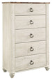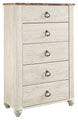 Willowton - Five Drawer Chest - Brown / Beige / White