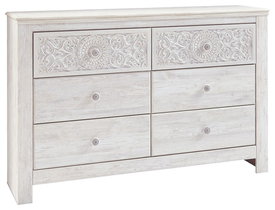 Paxberry - Six Drawer Dresser - Medallion Drawer Pulls - Whitewash