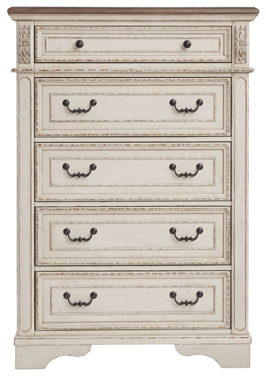 Realyn - Five Drawer Chest - White / Brown / Beige
