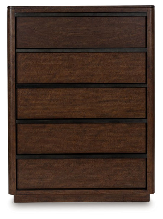 Casual contemporary styling with a decidedly modern vibe. This chest of drawers is warm and inviting with a rich dark brown finish, adorning your restful retreat with on-trend elegance. Full-length metal pulls in a matte black...Sale price $1,199.99Regular price $1,799.99Sale price $1,199.99Regular price $1,799.99 -