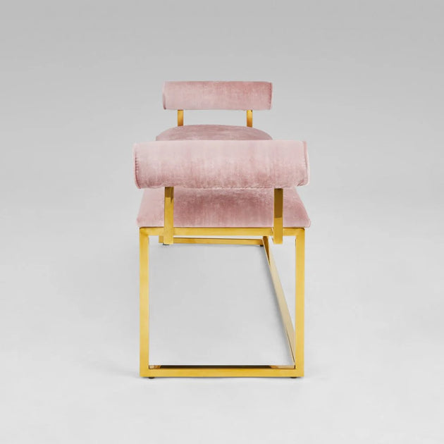 Serena Elegant Pink Velvet Bench with Polished Gold Base