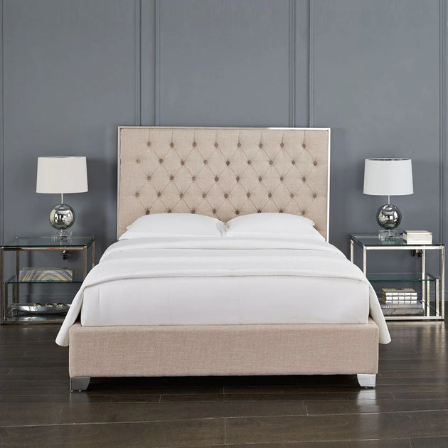Kroma Tufted Upholstered Bed Beige Linen