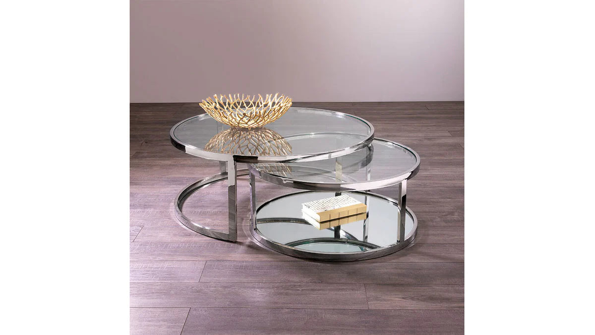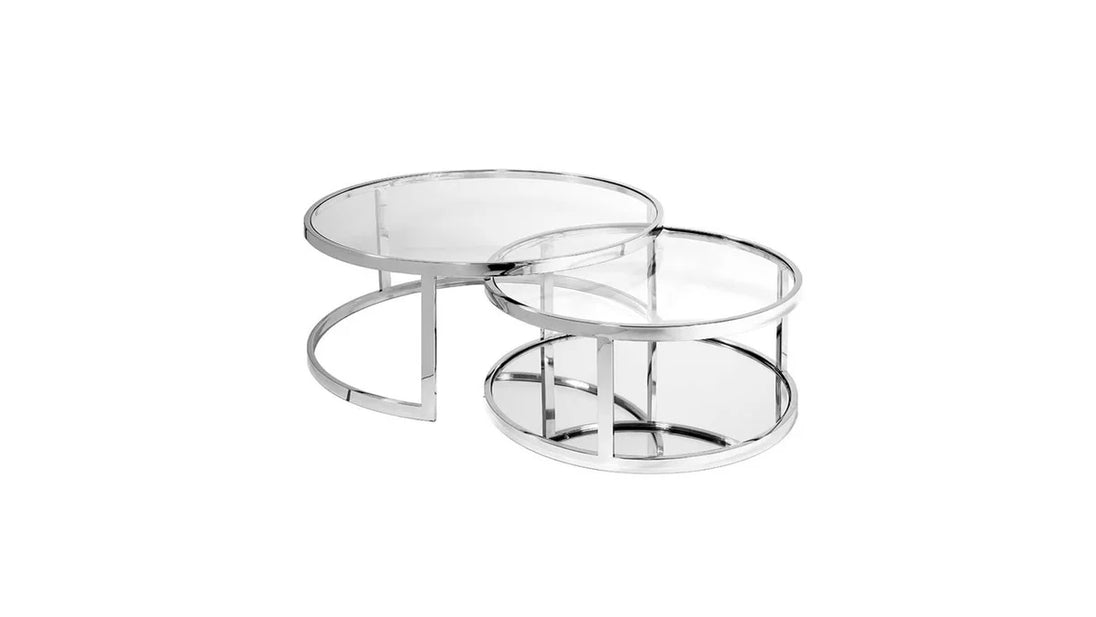 Make the most out of the incredible creativity and functionality brought by our stunning Avon Nesting Coffee Tables that come in a pair of 2 tables which are identical in design but different in sizes, crafted to assist you in various household activities such as your meal time, morning coffee, movie nights at home, board gaming sessions with your loved ones and so on. They carry a charismatic appeal in its sheer transparent tempered glass top and clearly reflecting mirror bottom shelf framed by luminous stainless steel, forming a stiff support to its entirety. While elevating the beauty of your home decor and theme of living space, the Avon Nesting Coffee Tables also encourage you to cherish moments and create memories around it, ultimately providing you with not just an eye-catching furniture piece but also a spot where you can spend your happy hours.