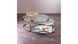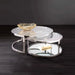 - Sleek mirroring bottom shelf integrated to one of the tables