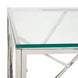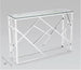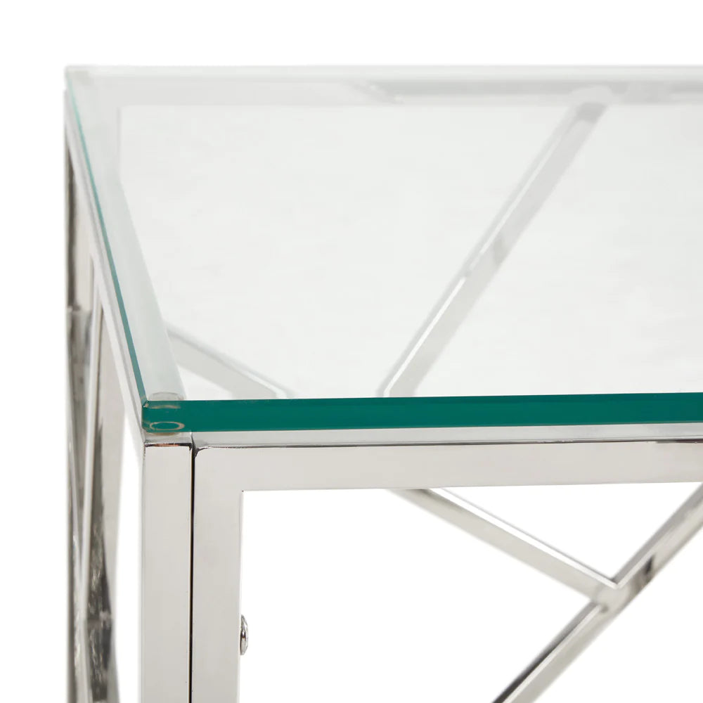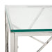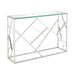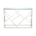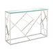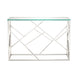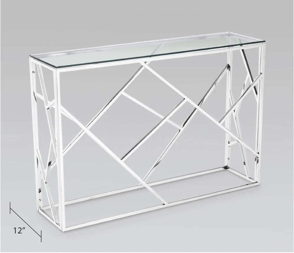 A bestseller and a fan favorite. The Carole console table features a stunning abstract silhouette with clean crisp lines of polished stainless steel running along in a jagged formation across the perimeter. A truly sculptural masterpiece, this console table will add sophistication and modern flair to your living space. With enough surface space on the tempered glass top, it's the perfect versatile foyer piece to hold books, decorative bowls, and any other existing decor. Pair it with the Carole end and coffee tables for a quick solution to your home decor bundles.