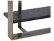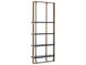 A distinctly modern bookcase crafted from German oak wood veneer featuring a black finish and unique wood grain. A stunning brushed antique brass steel frame completes the look. A true show piece suitable for both contract and residential environments.