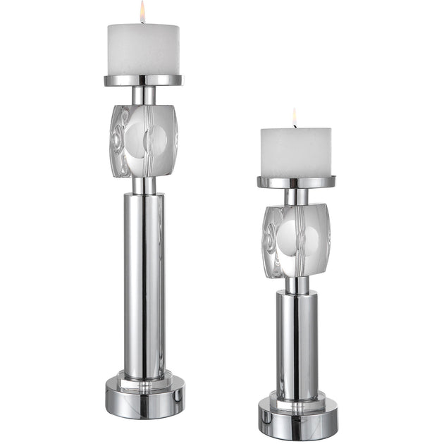 Claire Crystal Block Candleholders (Set of 2) Beige