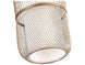 Elevate living, lounge and dining spaces with this industrial ceiling light. The captivating design features an cylindrical cage-like frame. Install multiples for a dramatic effect. Available in gold finished iron with a white fabric shade.
