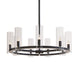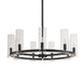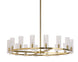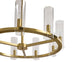 Brighten up any space with this large, sophisticated chandelier that invokes timeless elegance. Crafted with a metal wheel frame in a brass finish and features clear glass cylinder shades. Also available in a small version, along with a black finish option.