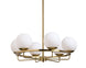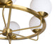 Elevate any space with this modern chandelier that is guaranteed to add brightness in a stylish manner. Features six white frosted glass shades in a metal wheel frame with a brass finish.