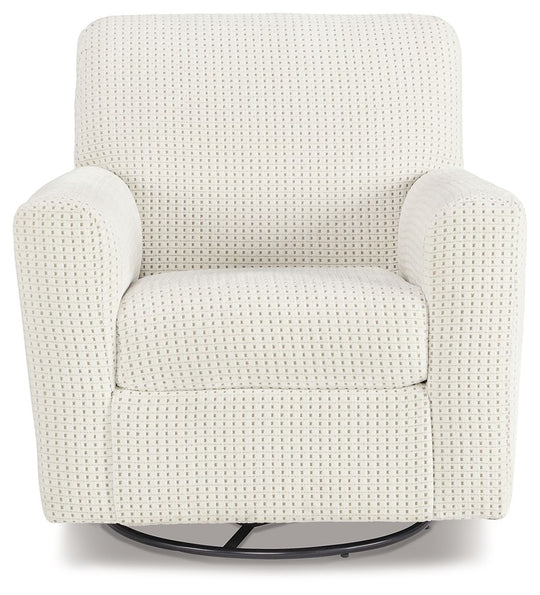 Herstow - Swivel Glider Accent Chair - Fabric - Ivory