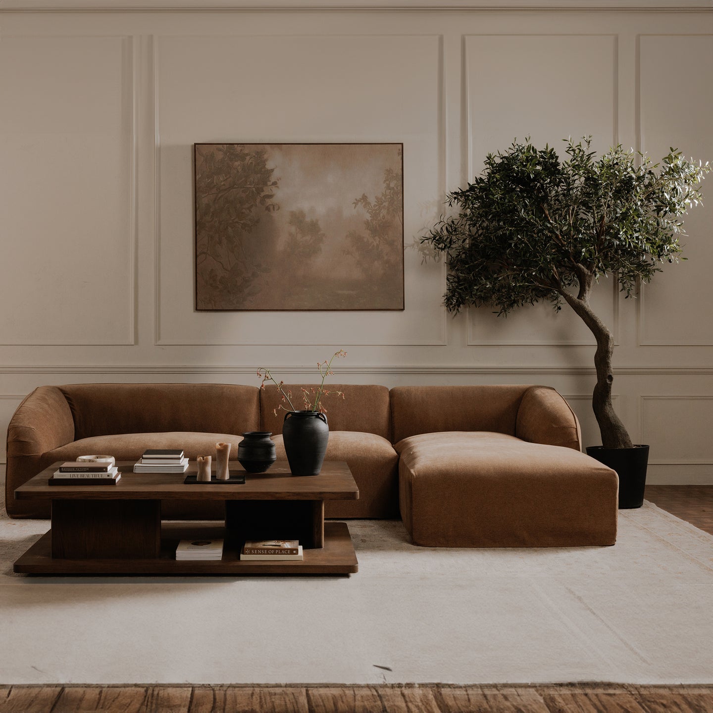 The Isla’s versatile modular form, washable slipcover, and relaxed comfort are designed for everyday living. Ultra-soft, removable and machine washable slipcovers ensure effortless maintenance while preserving a casual elegance. Isla’s relaxed silhouette adapts seamlessly to any space, exuding warmth in a rich hue, and inviting lounged relaxation with its soft, curves and plush faux feather fill.