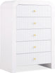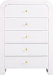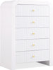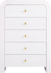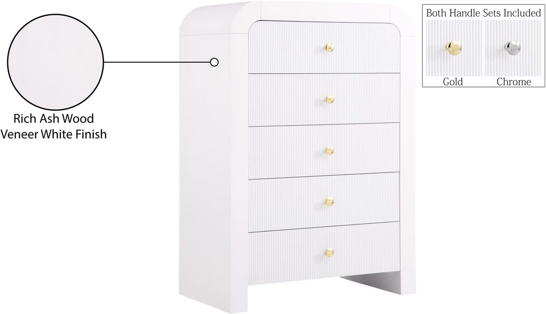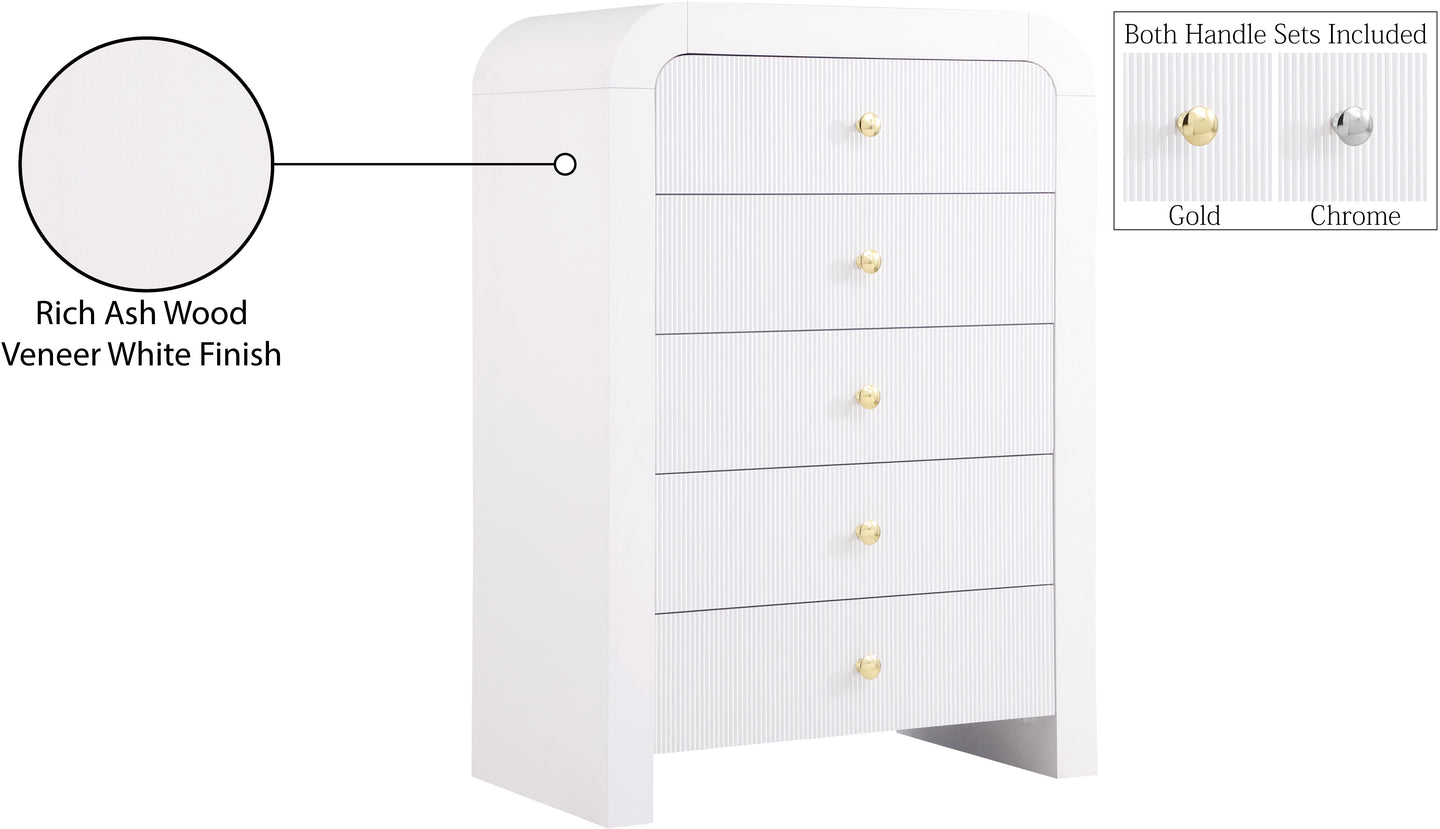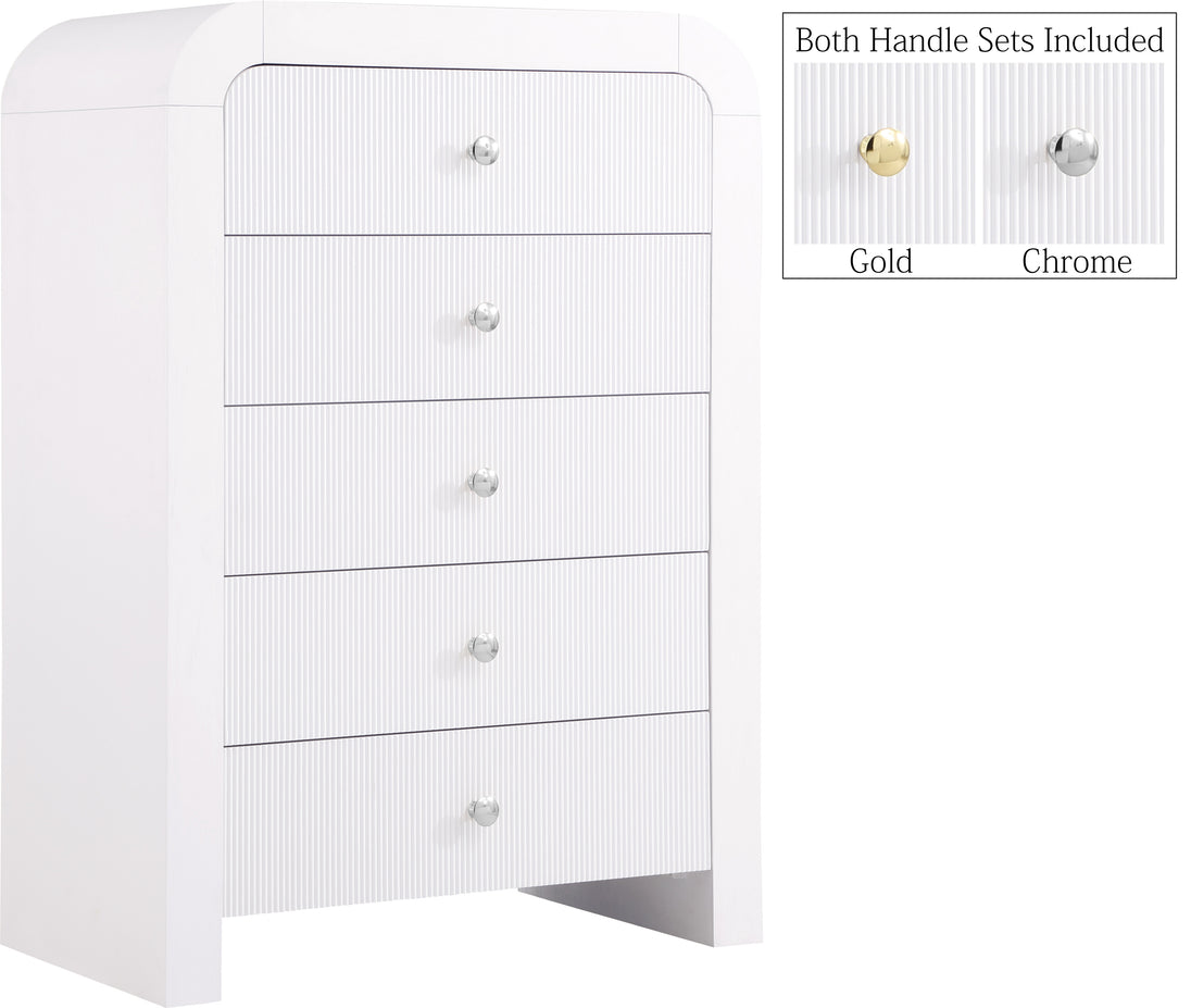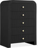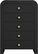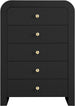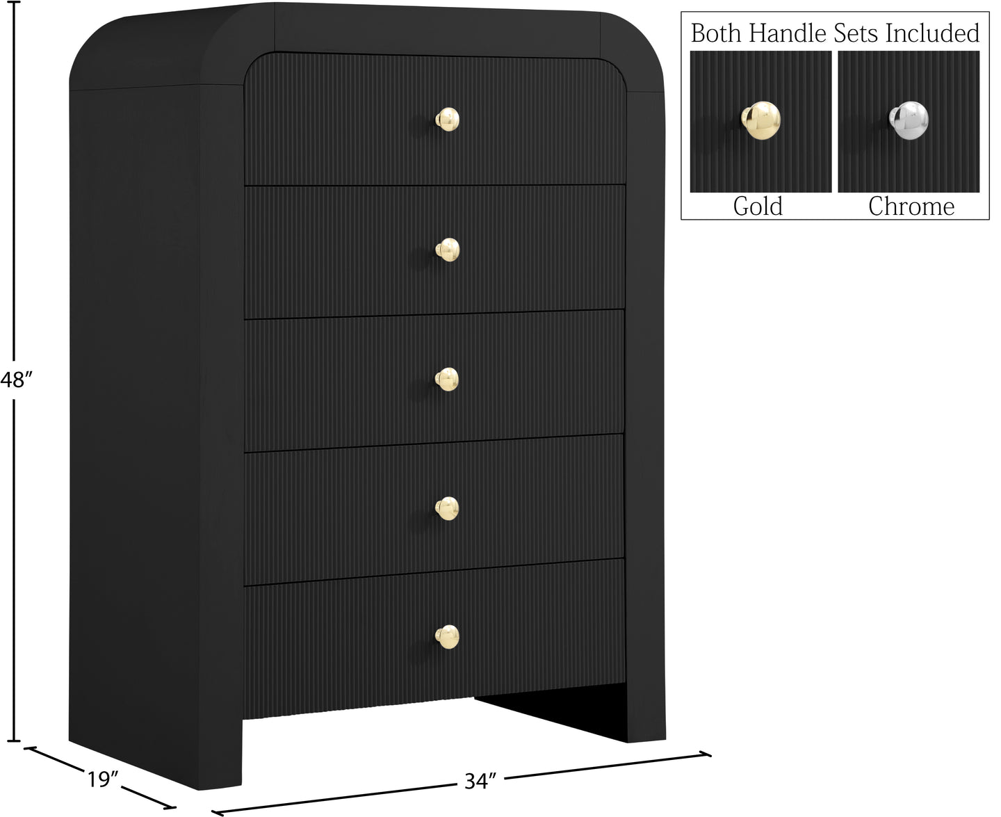 Make organizing a stylish affair when you bring home this Artisto chest. This beautiful chest features an elegantly eye-catching design with its rich wood veneer black finish and its textured drawer front designs. Five drawers give you oodles of room for storing items out of sight and out of mind, and the roomy drawers make sure that organizational power is at your fingertips. For versatility, both gold and chrome handles are included with the chest.