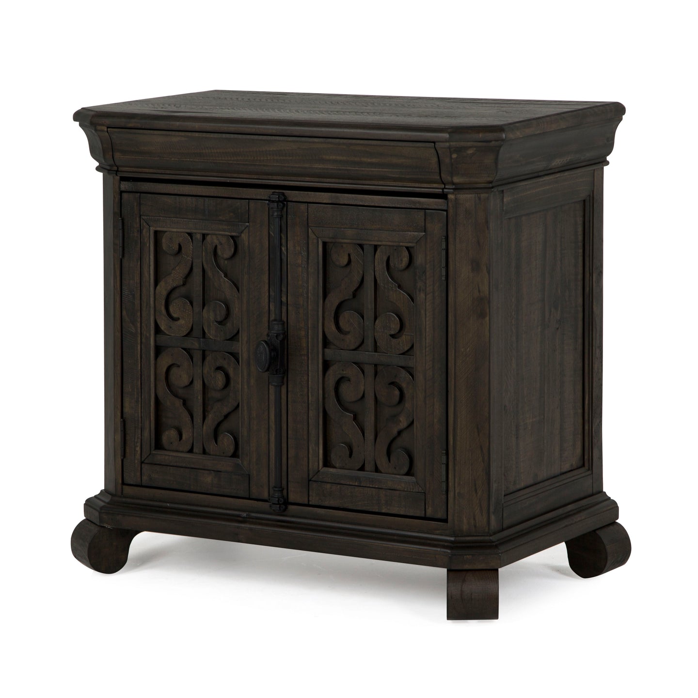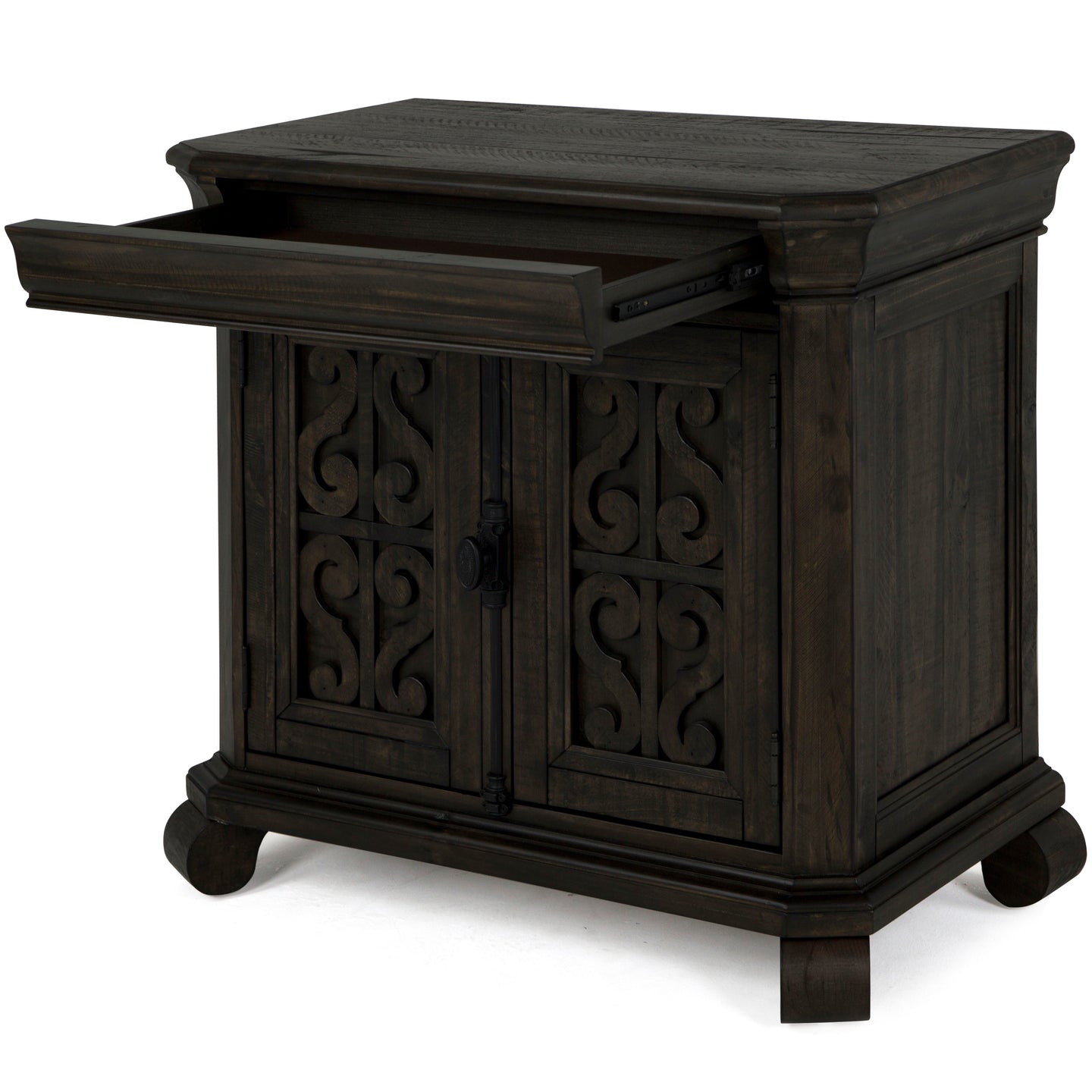 Warm and inviting like an old French friend, Bellamy welcomes with European inspired styling in a unique Peppercorn finish and matte black pewter accented hardware. Scrolling open woodwork adorns the well appointed media chest doors while roomy dressers and chests feature rounded corners atop rounded bun feet. A plethora of bed options offer upholstered tufted headboards, storage footboards, panel headboards and gorgeous shaped panels with or without sumptuous scrolled design work for a Chateau feel for any taste.