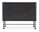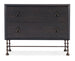 - Finish: Charred Timber: inspired by the restorative beauty of a fire-ravaged forest. Distressing includes worm holes, rasping, gauging, plane shock, hand plane, drawknife, wire brush and screw head. Dark brushed bronze bail pulls and metal legs.