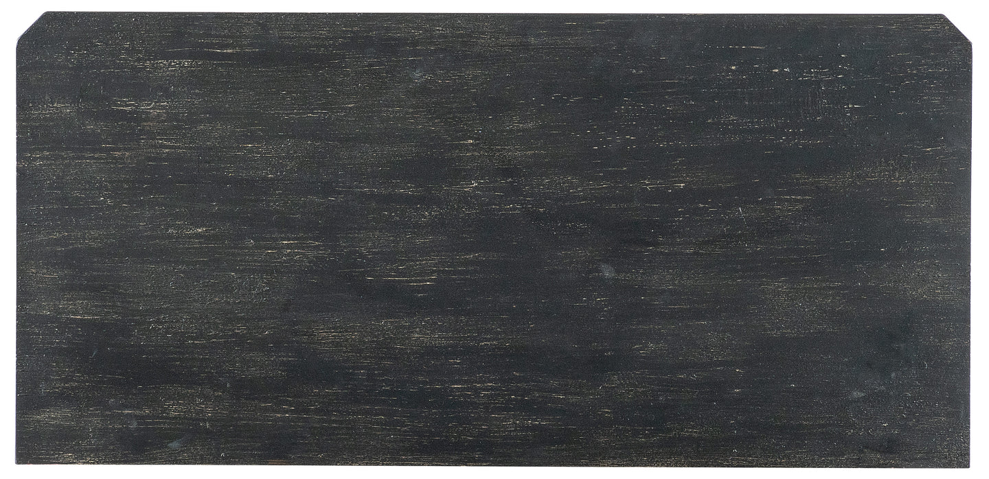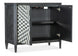 - Finish: Black finish with distressing with white startburst design on door fronts