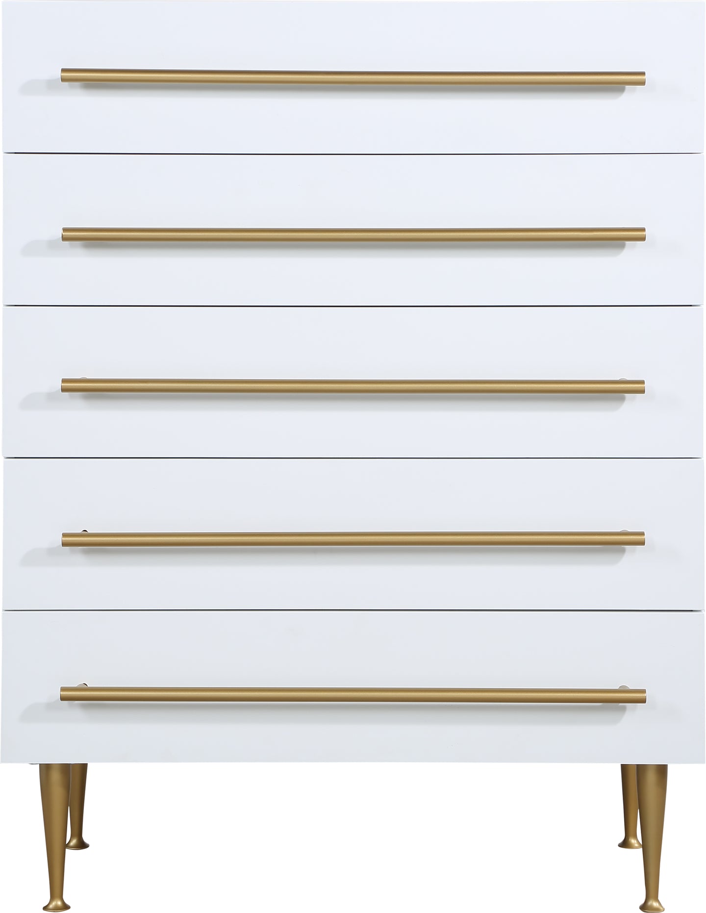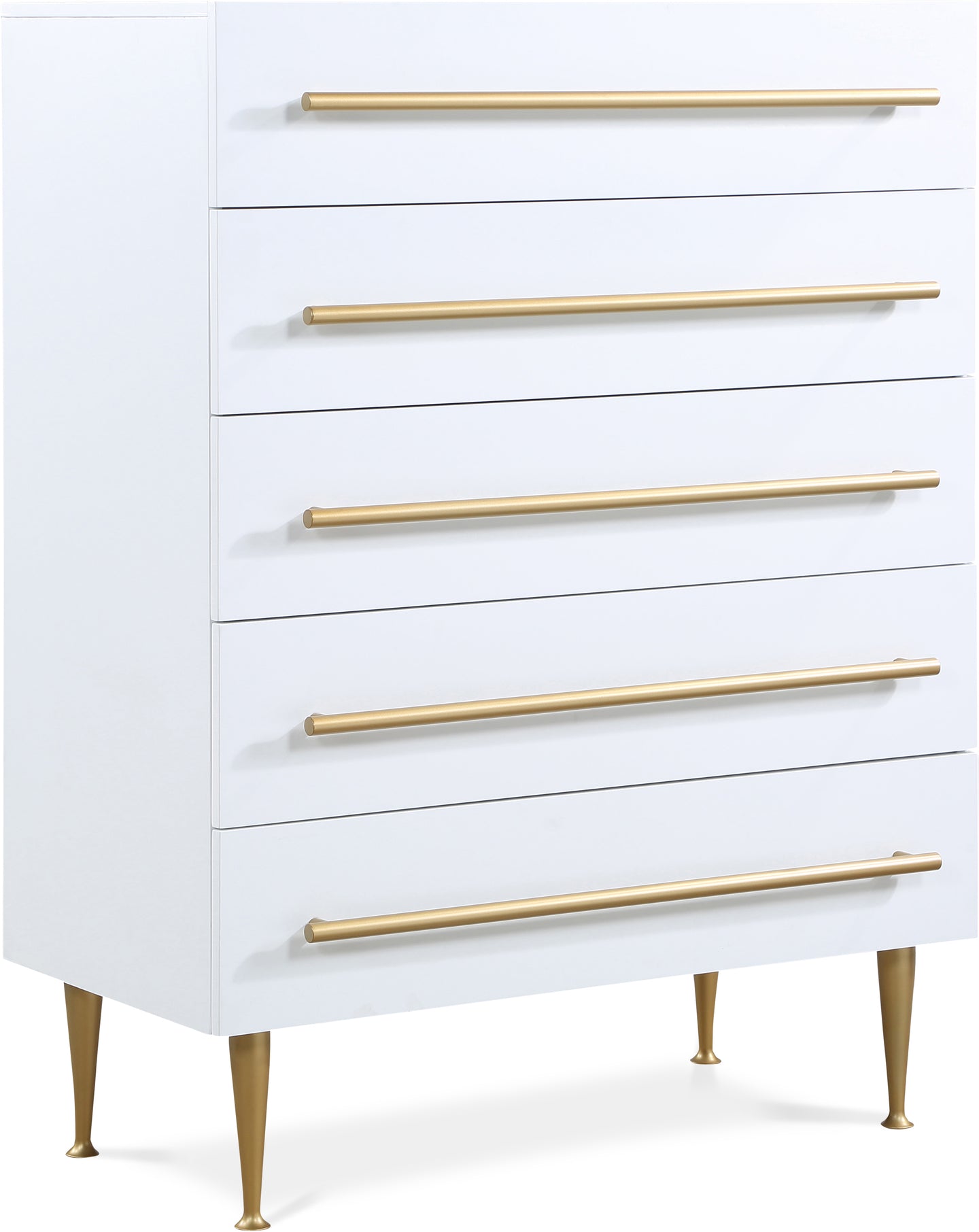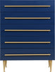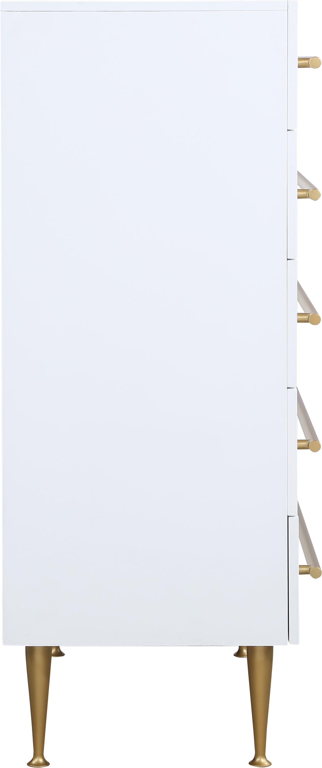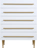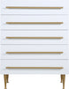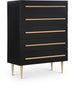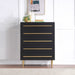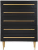 Turn to the Marisol chest to make a big impression in your modern bedroom. This contemporary piece looks great on its own or paired with other items in the Marisol collection. Eye-catchingly elegant, this piece features a rich black finish with brushed gold metal legs and handle for an up-to-the-minute vibe in your bedroom sanctuary. Minimalist hardware adds functionality without overpowering the unit. Wood construction adds to its durable design.