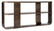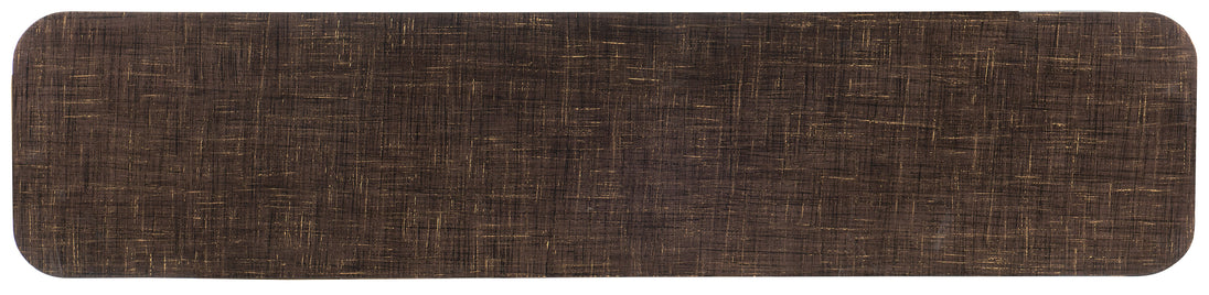 With a unique silhouette, rich finish and metal accents, the Edmun Sofa Table is a striking addition to any living space. Featuring a rectangle shape with rounded edges, the table is crafted of Maple Veneers in a dark wood finish with metal caps. One fixed shelf in the center.