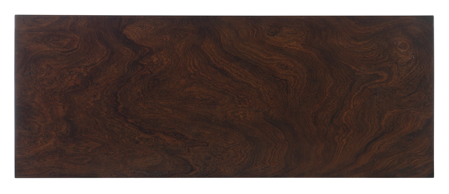 - Primary Materials: Swirl Mahogany with Glass, Silver Leaf and Metal