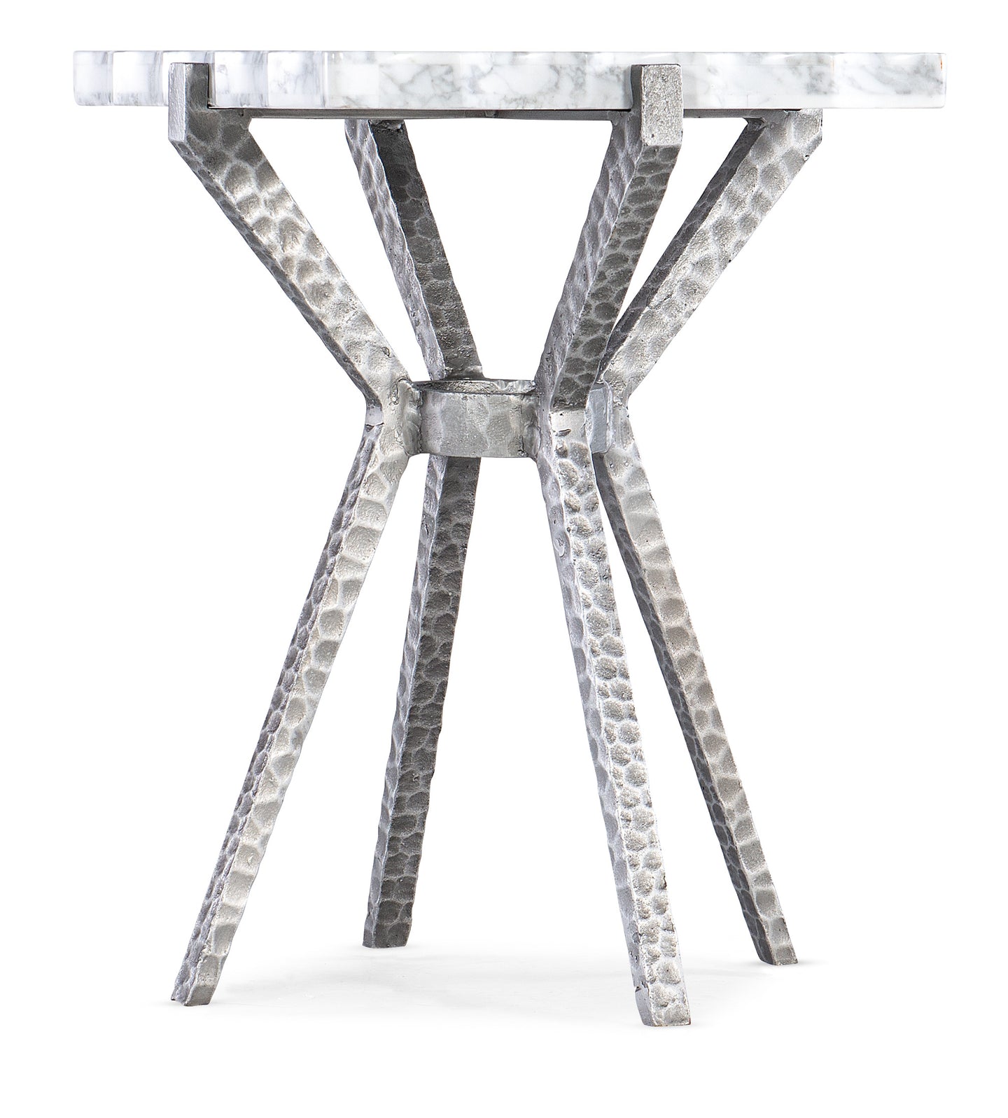- Finish: Silver distressed base with white and gray marble top