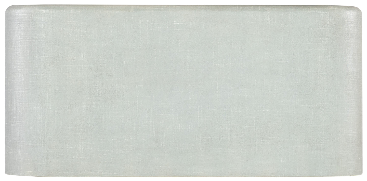 - Finish: Light seafoam green linen exterior with clear acrylic legs and silver chrome-colored metal accents. Hardware is clear acrylic and chrome-colored metal drop pulls.