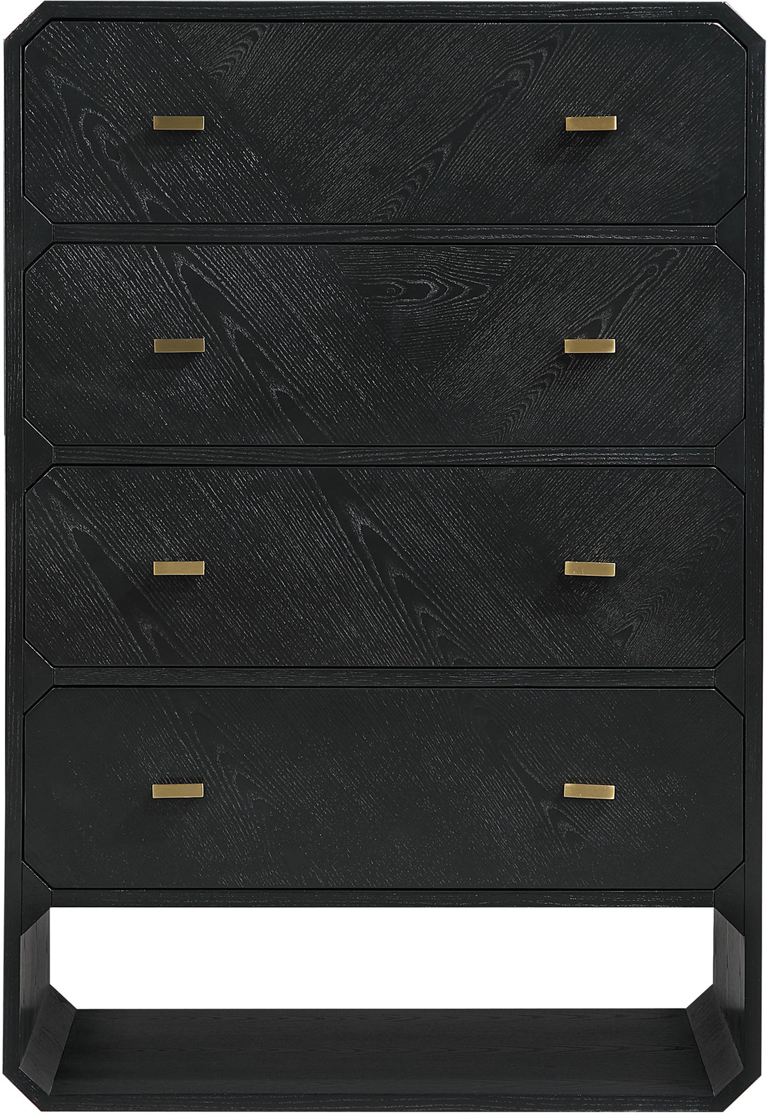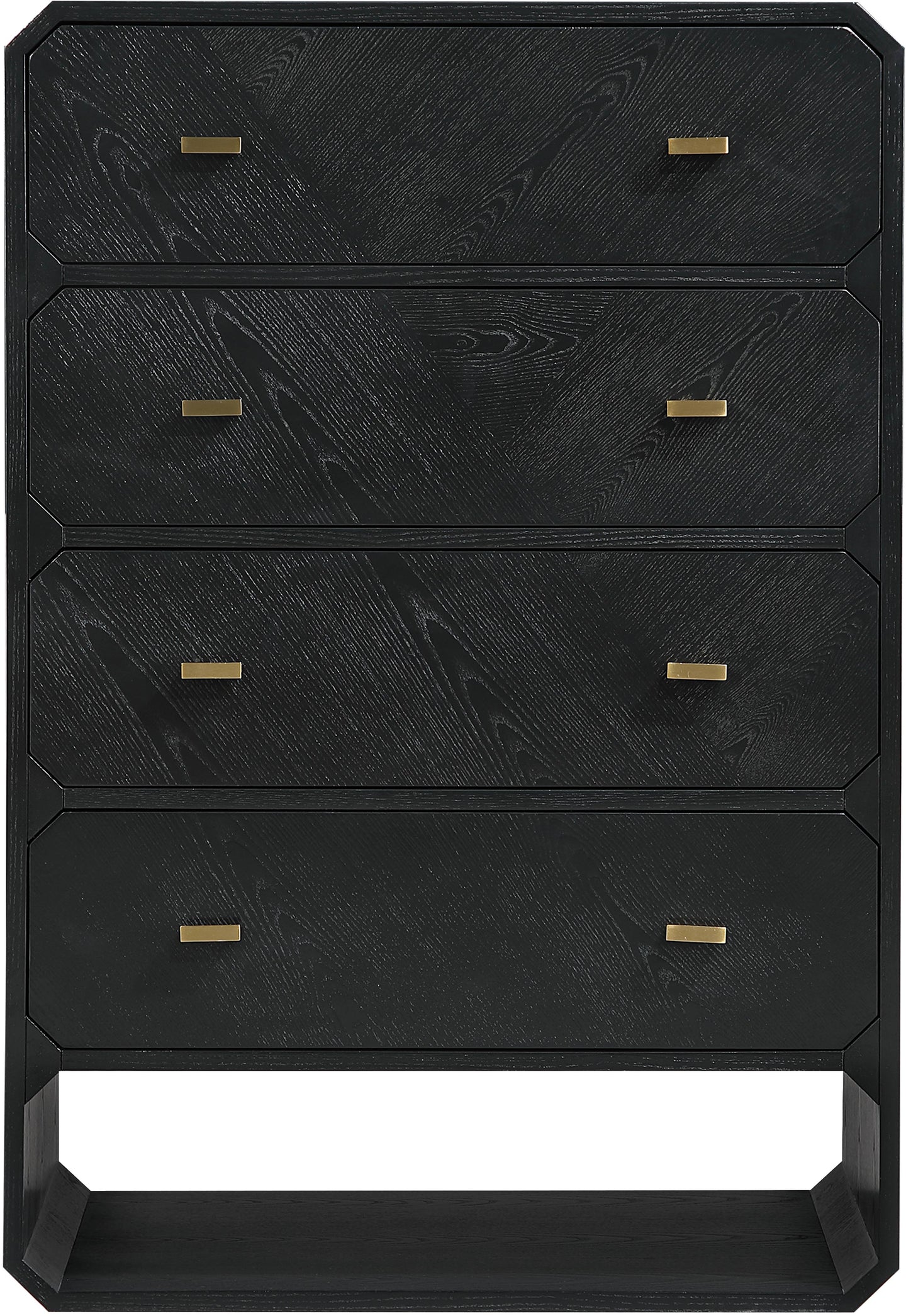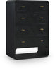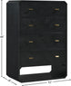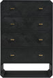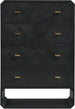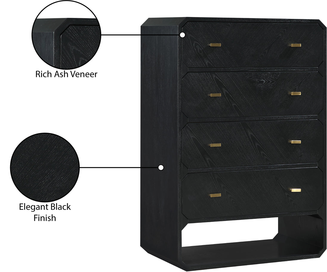 If elegant simplicity is on your checklist, then this Parker black ash veneer chest hits the mark from all angles. A sophisticated black finish gives this chest modern flair and refinement while its simple lines ensure a minimalist presentation in your bedroom sanctuary. Four drawers are amply sized for holding undergarments, tees, and unmentionables out of sight and within easy reach. Rich ash veneer adds durability and lasting beauty to the chest's design, whether purchased as a standalone piece or alongside other pieces in the Parker collection.