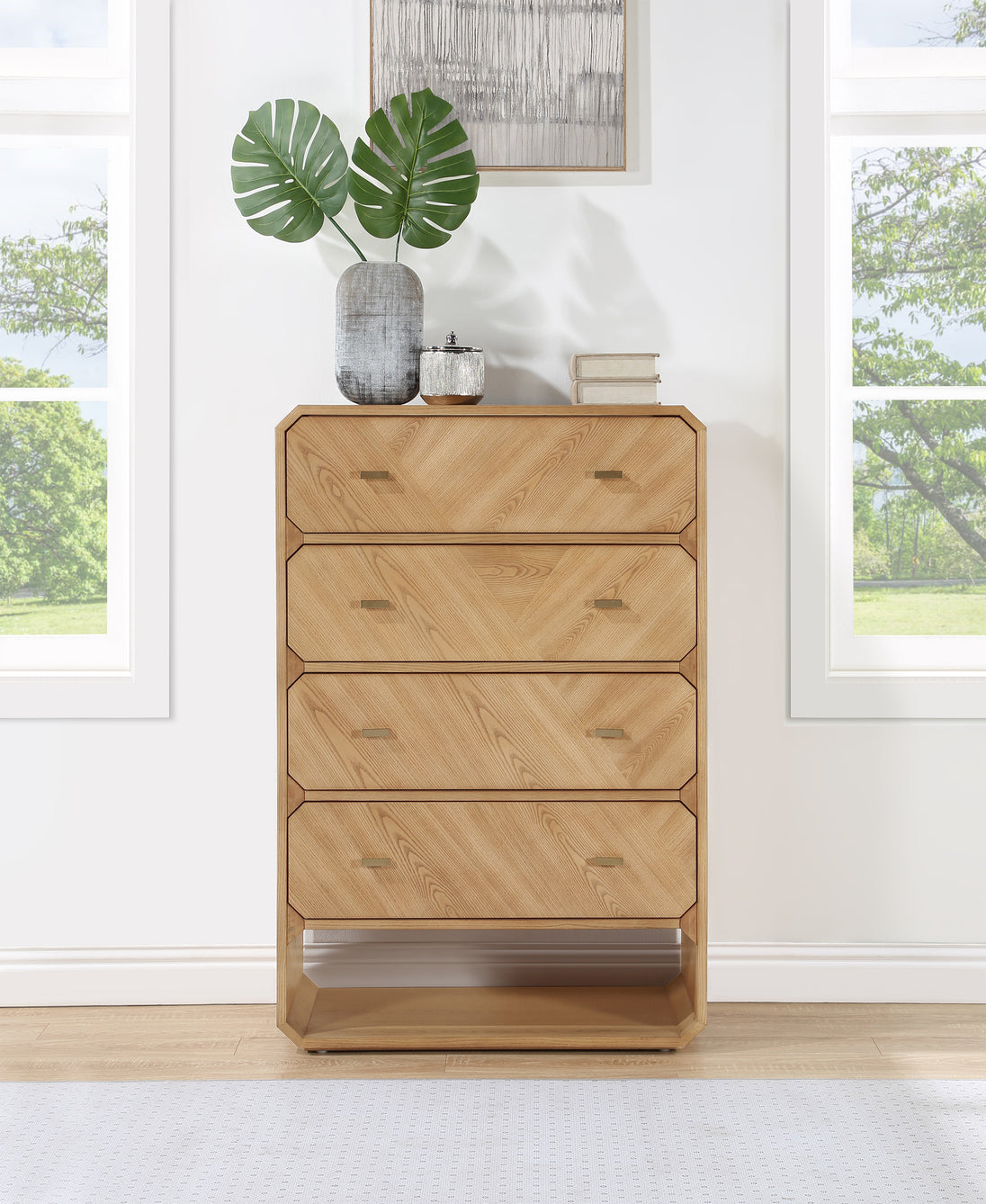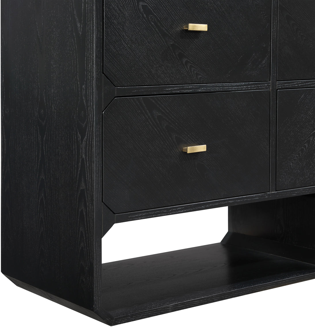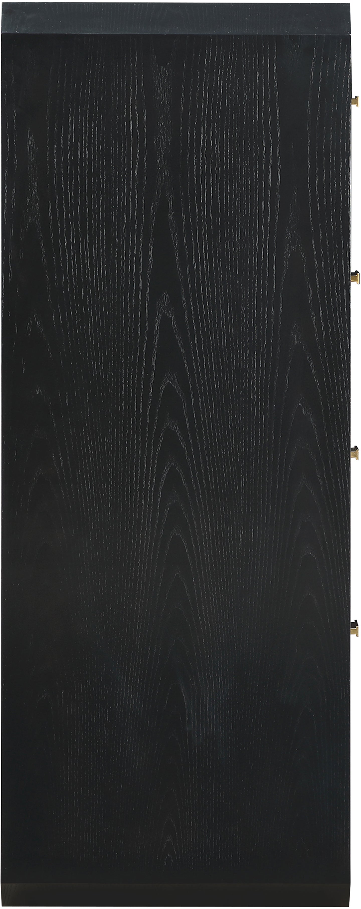 If elegant simplicity is on your checklist, then this Parker black ash veneer chest hits the mark from all angles. A sophisticated black finish gives this chest modern flair and refinement while its simple lines ensure a minimalist presentation in your bedroom sanctuary. Four drawers are amply sized for holding undergarments, tees, and unmentionables out of sight and within easy reach. Rich ash veneer adds durability and lasting beauty to the chest's design, whether purchased as a standalone piece or alongside other pieces in the Parker collection.
