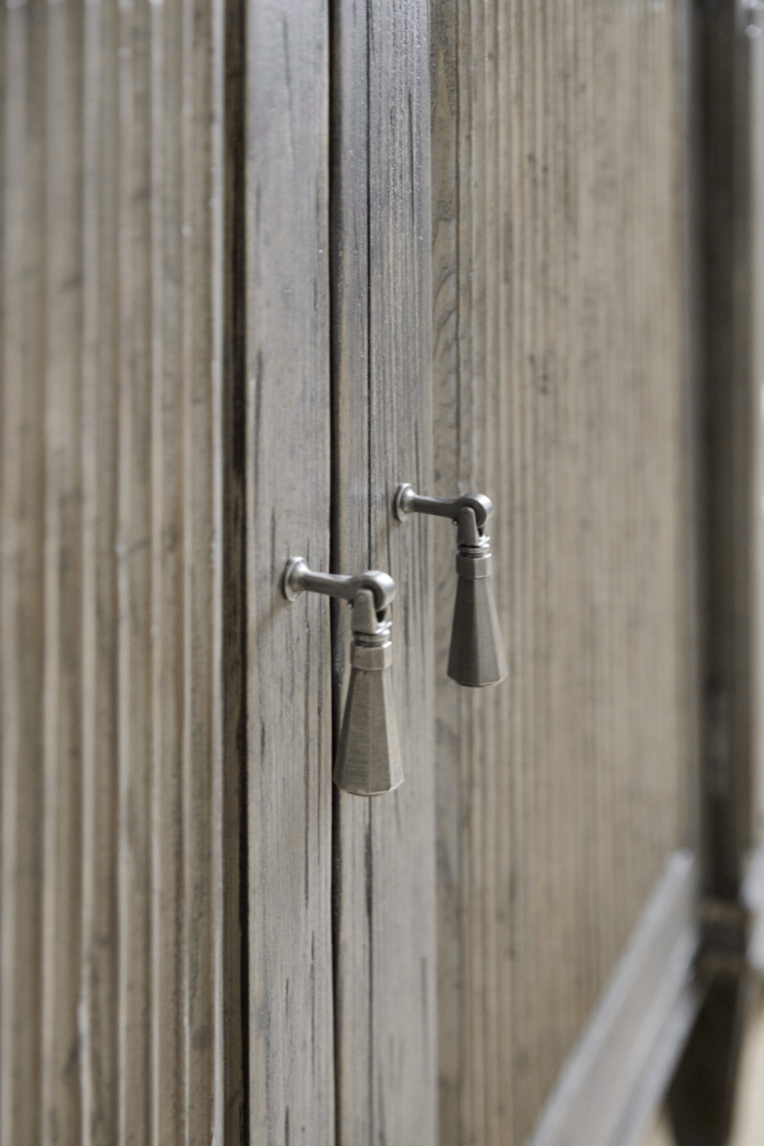 - Finish: Quartz Grey, a light wood tone with areas of cool gray burnishing creating a subtle two-tone effect. Distressing includes sandblasting, scraper, graver, wormholes, rock, knocking and rough edges. Pewter color metal alloy bail pulls.