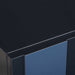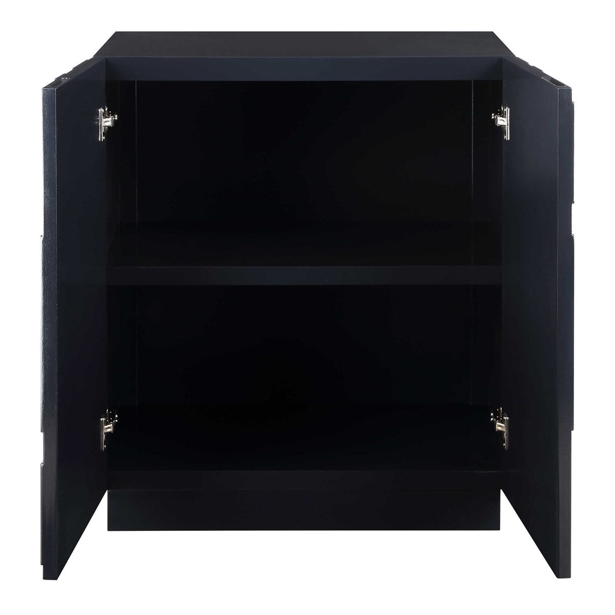 Highlighting a sleek modern look, the Valeria cabinet features a stunning combination of glossy cobalt blue and navy lacquer. Featuring plenty of storage space and a striking look this cabinet can become the focal point of any room by marrying style and functionality. Has two fixed interior shelves.