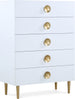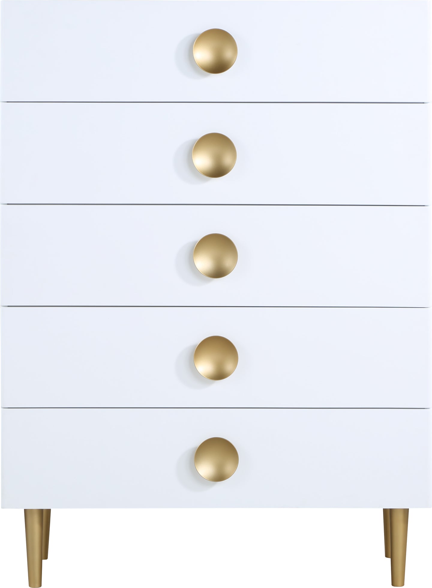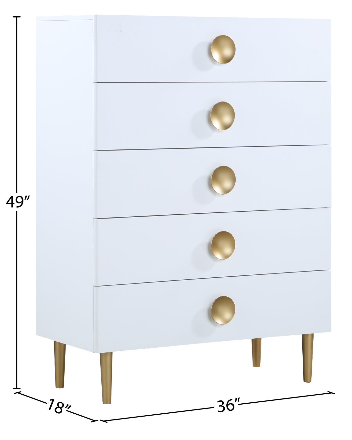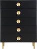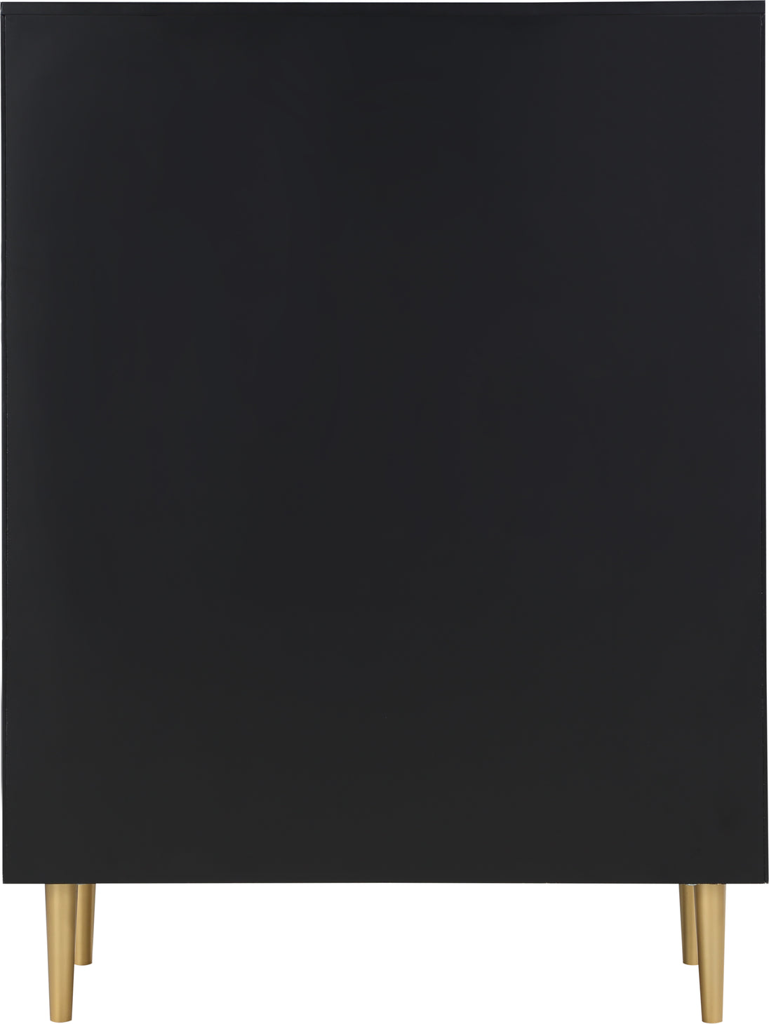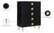 Watch your decor cascade to new heights when you bring home this Zayne chest. It features a rich black finish that sets an instant contemporary vibe in your space. Its brushed gold metal legs and handle add a sophisticated slant to the piece's design, ensuring it's a simple and easy fit with other modern pieces. Pair this unit with other items in the Zayne collection for a seamless presentation in your room.