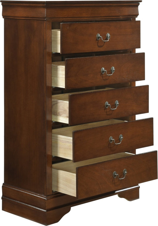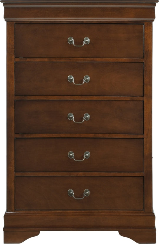 SALE             Mayville Bedroom Chest - Cherry Product Description: Traditional in design and modest in scale, the elegant Mayville Collection takes its design inspiration from the classic Louis Philippe styling. The Okume veneer of the chest is paired with a brown cherry finish and...Sale price $499.00Regular price $799.00Sale price $499.00Regular price $799.00