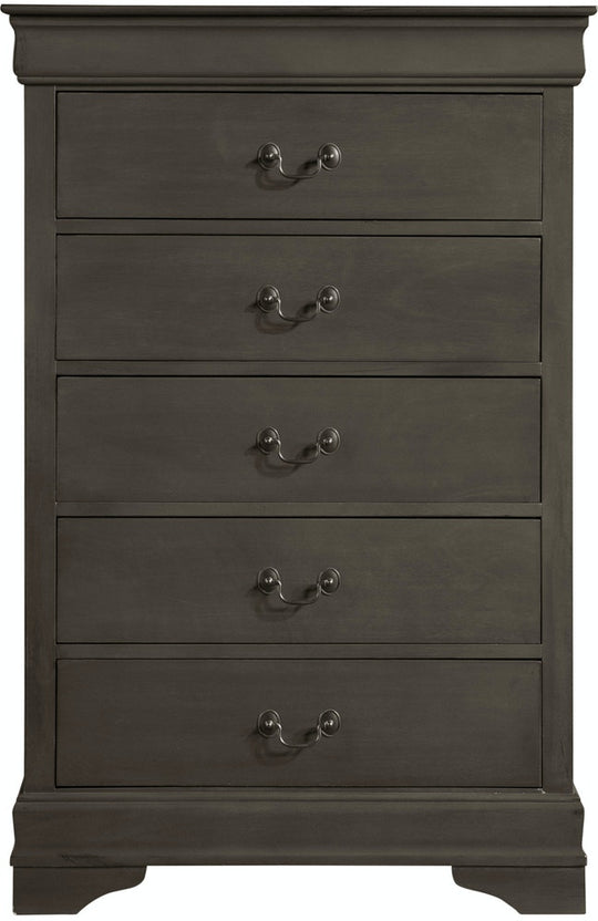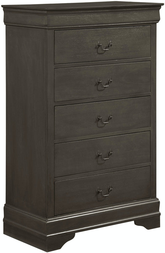 SALE             Mayville Bedroom Chest - Gray Product Description: Traditional in design and modest in scale, the elegant Mayville Collection takes its design inspiration from the classic Louis Philippe styling. The Okume veneer of the chest is paired with a gray finish and is...Sale price $499.00Regular price $899.00Sale price $499.00Regular price $899.00