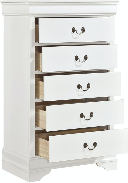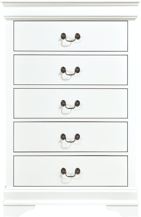 SALE             Mayville Bedroom Chest - White Product Description: Traditional in design and modest in scale, the elegant Mayville Collection takes its design inspiration from the classic Louis Philippe styling. The Okume veneer of the chest is paired with a white finish and is...Sale price $499.00Regular price $799.00Sale price $499.00Regular price $799.00