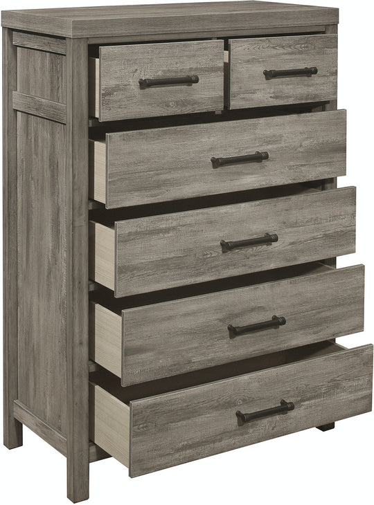 SALE             Bainbridge Bedroom Chest Product Description: Following the trend of rusticated simplicity is the Bainbridge Collection. Melamine laminate perfectly mimics the look of weathered gray wood, lending to the rustic style. The transitional framing of the chest allows for placement in...Sale price $899.00Regular price $1,249.00Sale price $899.00Regular price $1,249.00