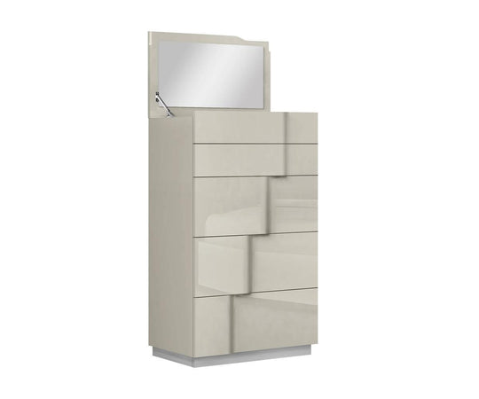 SALE         Latania Chest This modern bedroom set has a modern, grey lacquer finish. The bed contains LED lights to provide a futuristic feel. The nightstand contains a wireless charger making it easy to recharge your essentials. The set is...Sale price $899.00Regular price $1,399.00Sale price $899.00Regular price $1,399.00