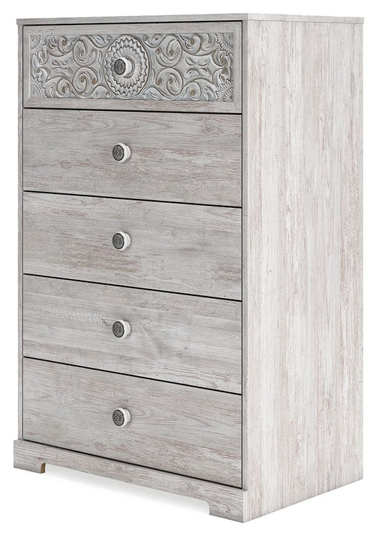 Cool, clean and casually modern. This chest’s wispy whitewash and gray finish sets the tone for your calming sanctuary. Large linear pulls add dimension and authenticity. Four smooth-gliding drawers neatly accommodate your wardrobe needs.Additional DimensionsDrawer interior...Sale price $359.99Regular price $599.99Sale price $359.99Regular price $599.99