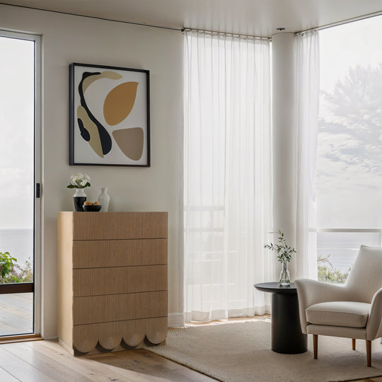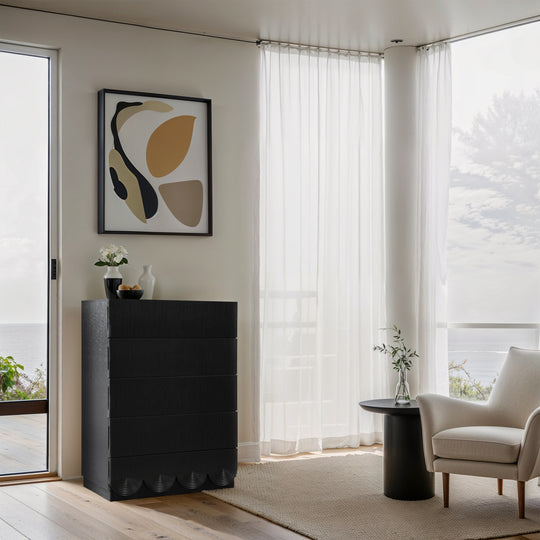 Features Rich Black Finish Oak Veneer Fluted Drawers Art Deco Style Specifications Collection: Scallop Material: Oak Veneer / MDF / PU Style: Art Deco Dimensions: 36" W x 19" D x 48" H Assembly Required: Yes...Sale price $2,070.00Regular price $2,760.00Sale price $2,070.00Regular price $2,760.00 -