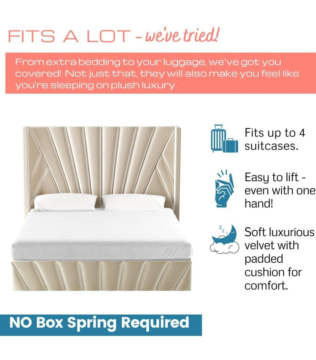 - Additional Storage - Gas-lift storage bed w/ 10-inch storage. Practical bedding option with a storage compartment underneath. Perfect space-saving functionality.