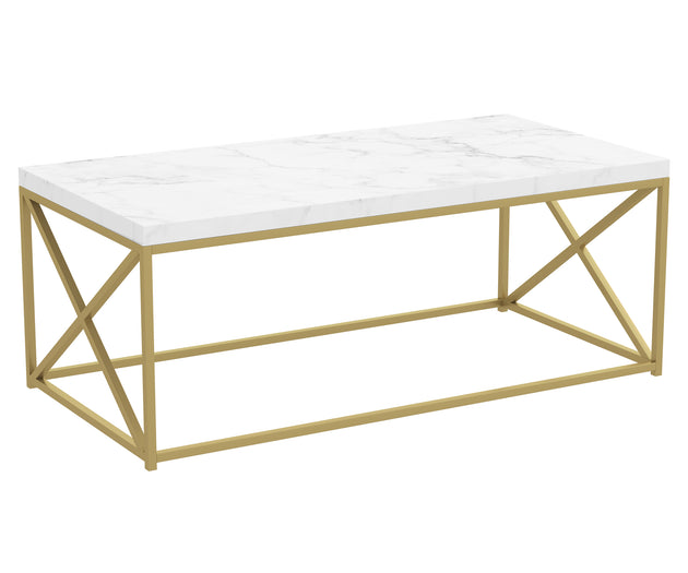 44" Coffee Table Marble Gold Metal