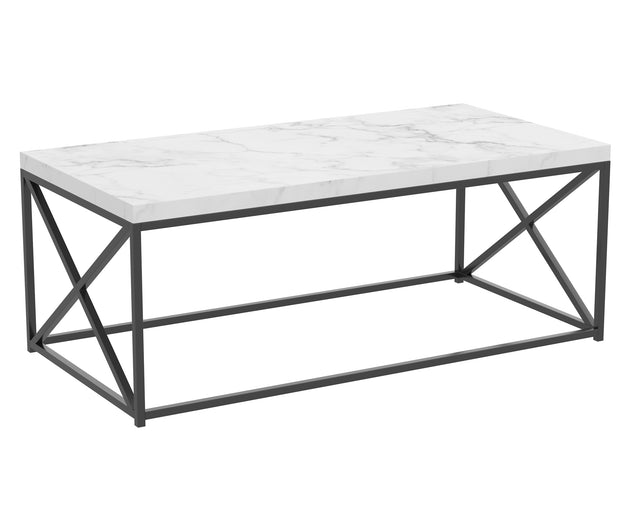 44" Coffee Table Marble Black Metal