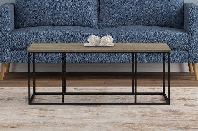 44" Coffee Table Dark Grey Wood Black Metal