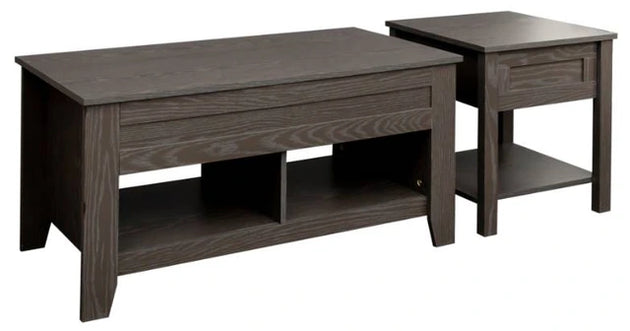 I 7939P Table Set - 2pcs Set / Taupe Reclaimed Wood / Black Metal