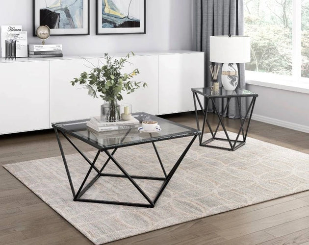 Kalia Glass Top Cocktail Table Set Collection with Gray Base