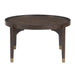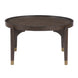 Elevate your living room with the refined elegance of this modern round table collection, designed to bring both style and functionality to your space. Crafted from a durable blend of birch veneer, solid wood, and engineered wood, each piece is finished in a rich dark brown tone that adds depth and sophistication to your décor. The design is accented by solid wood legs with metallic gold caps, introducing a subtle touch of glamour while ensuring sturdy, reliable support.