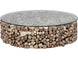 This exotic round coffee table will bring drama and dimension to living and lounge spaces. Each coffee table is uniquely handcrafted with driftwood pieces and finished with an tempered glass top.
