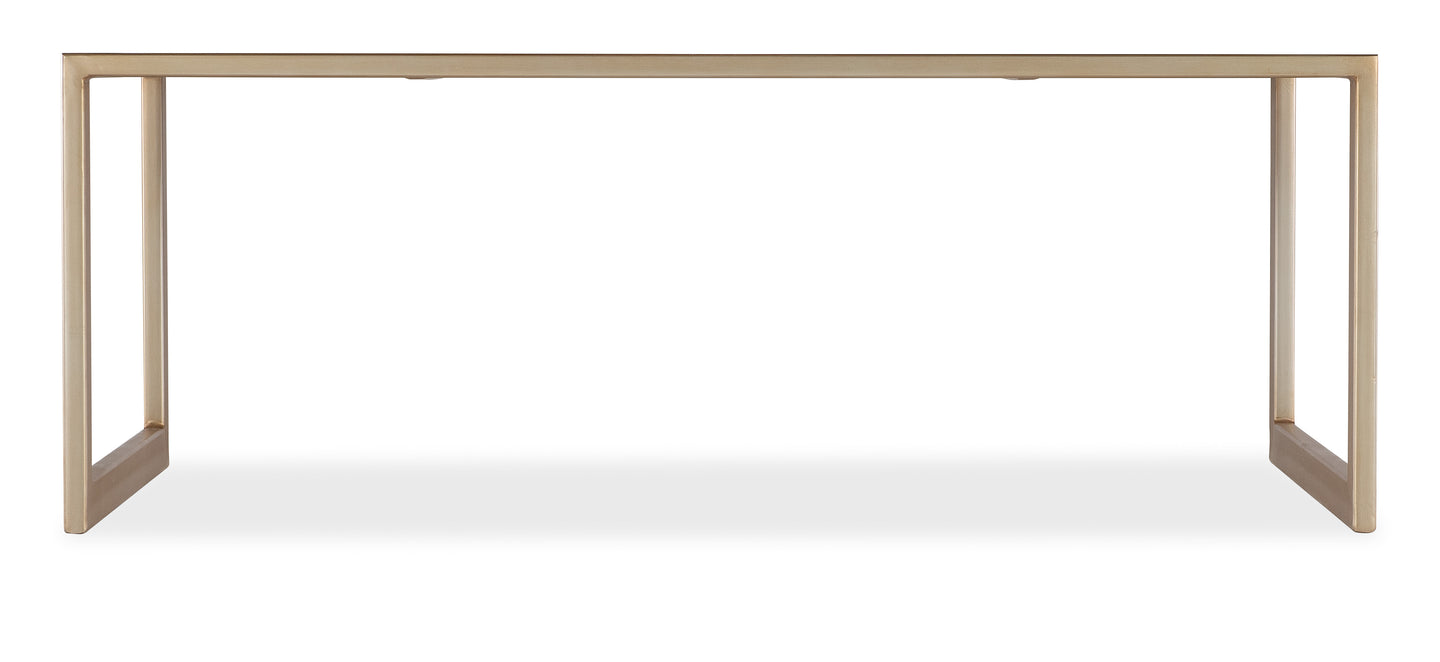 Feminine and delicate yet bold and striking, the Blossoming Hope Cocktail Table has a clean silhouette with gold painted metal legs and frame and a tempered Ultra White glass top with hand painting. The reverse-painted glass has a sweeping floral design in pink and green hues over the white background. Measures 32 inches wide by 32 inches deep.