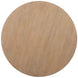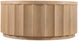 This round cocktail table features a scalloped silhouette, light oak finish, and hidden casters for flexible living room styling.