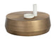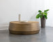 A large, captivating coffee table with an alluring antique gold finish. Features a hand-etched and hand-hammered top with a drum style base. This piece will add a contemporary flair to living, lounge and office spaces. Also available in a small version, along with a coordinating side table. Made in India. With refined craftsmanship, this design was brought to life by skilled local artisans. By nature, these materials develop unique imperfections such as fissures, markings and colour variations for a truly one-of-a-kind piece.