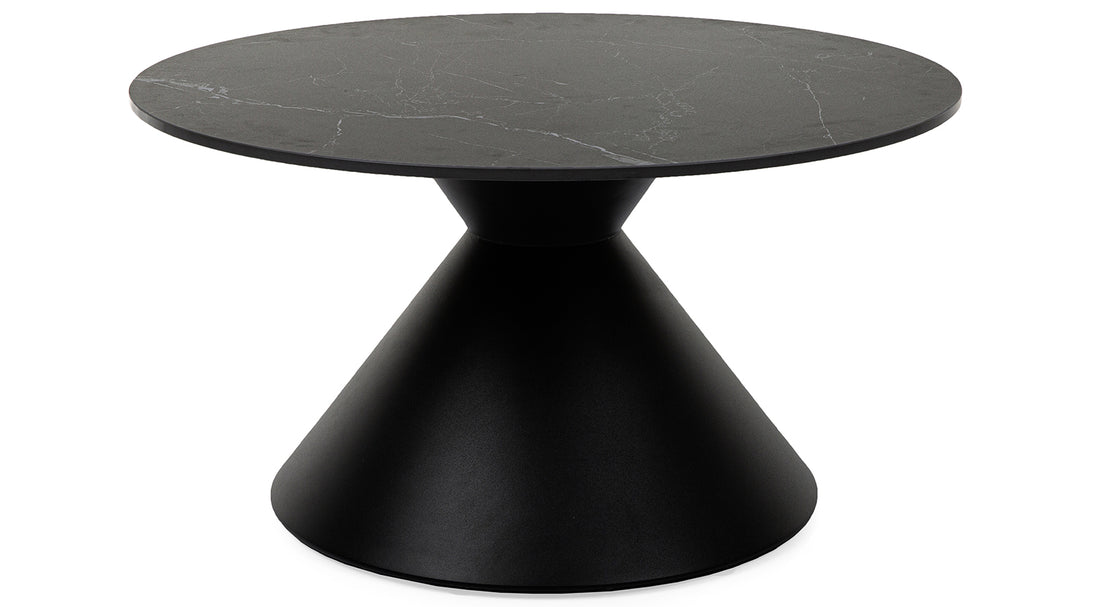 Add a touch of modern elegance to your living space with the Denise Coffee Table Collection. Featuring sleek sintered stone tops in black with subtle grey veining, each piece brings sophistication and durability to your home. The sturdy black metal base provides a striking contrast, making these tables the perfect centerpiece or accent for any contemporary setting.