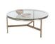 This European designed coffee table has a very light and airy look. Perfect for all contemporary and transitional spaces. Features a heavy 10mm tempered glass top on a powder coated steel base in an antique bronze finish. Also available in a chrome finish.
